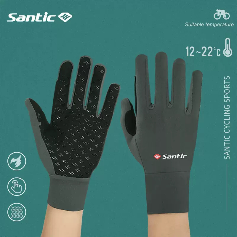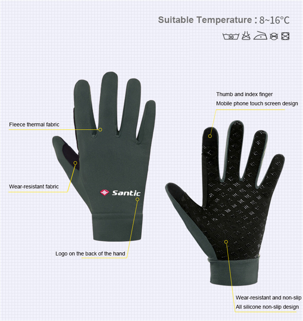 Santic Cycling Gloves Men Women Thermal Full Finger with Touch Function Shockproof Bike Bicycle Gloves