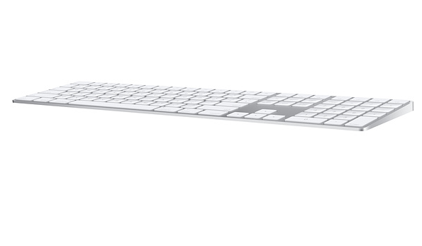 Magic Keyboard with Numeric Keypad features an extended layout, with document navigation controls for quick scrolling and full-size arrow keys for gaming. A scissor mechanism beneath each key allows for increased stability, while optimized key travel and a low profile provide a comfortable and precise typing experience. The numeric keypad is also great for spreadsheets and finance applications. And the built-in, rechargeable battery is incredibly long-lasting, powering your keyboard for about a month or more between charges.