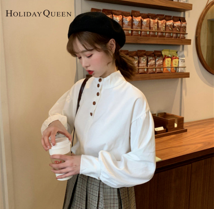 HolidayQueen Spring and Autumn Women's New Long-sleeved Loose Retro Korean Version of All-match Student Shirt Bottoming Shirt S M L XL Free Shipping HQ0571