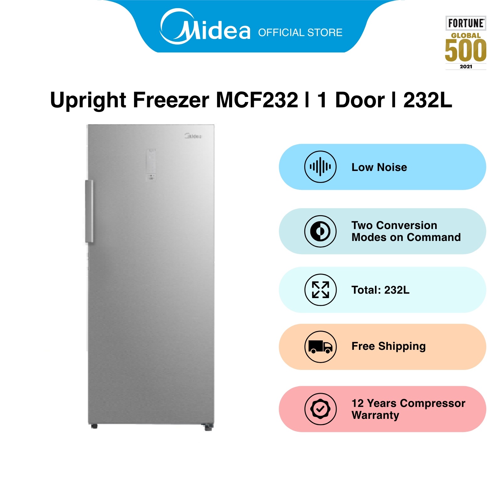 [Bulky] Midea MCF232 Silver Upright Freezer, 232L, Energy Rating A+