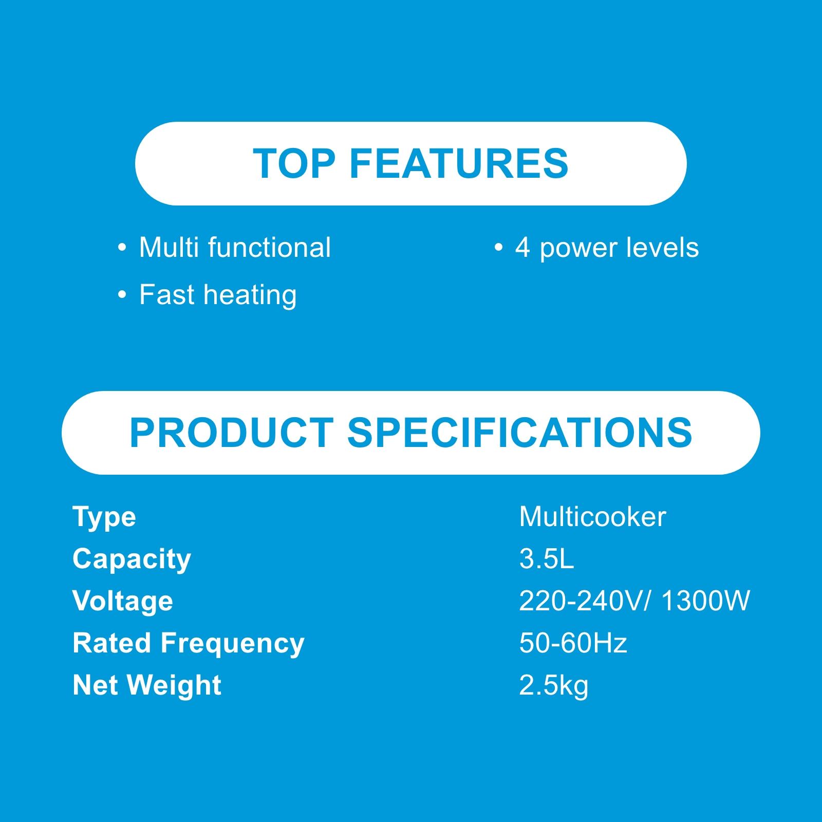 Midea MEC-1040W White Non-Sticky Coating Electric Hot Pot, 3.5L