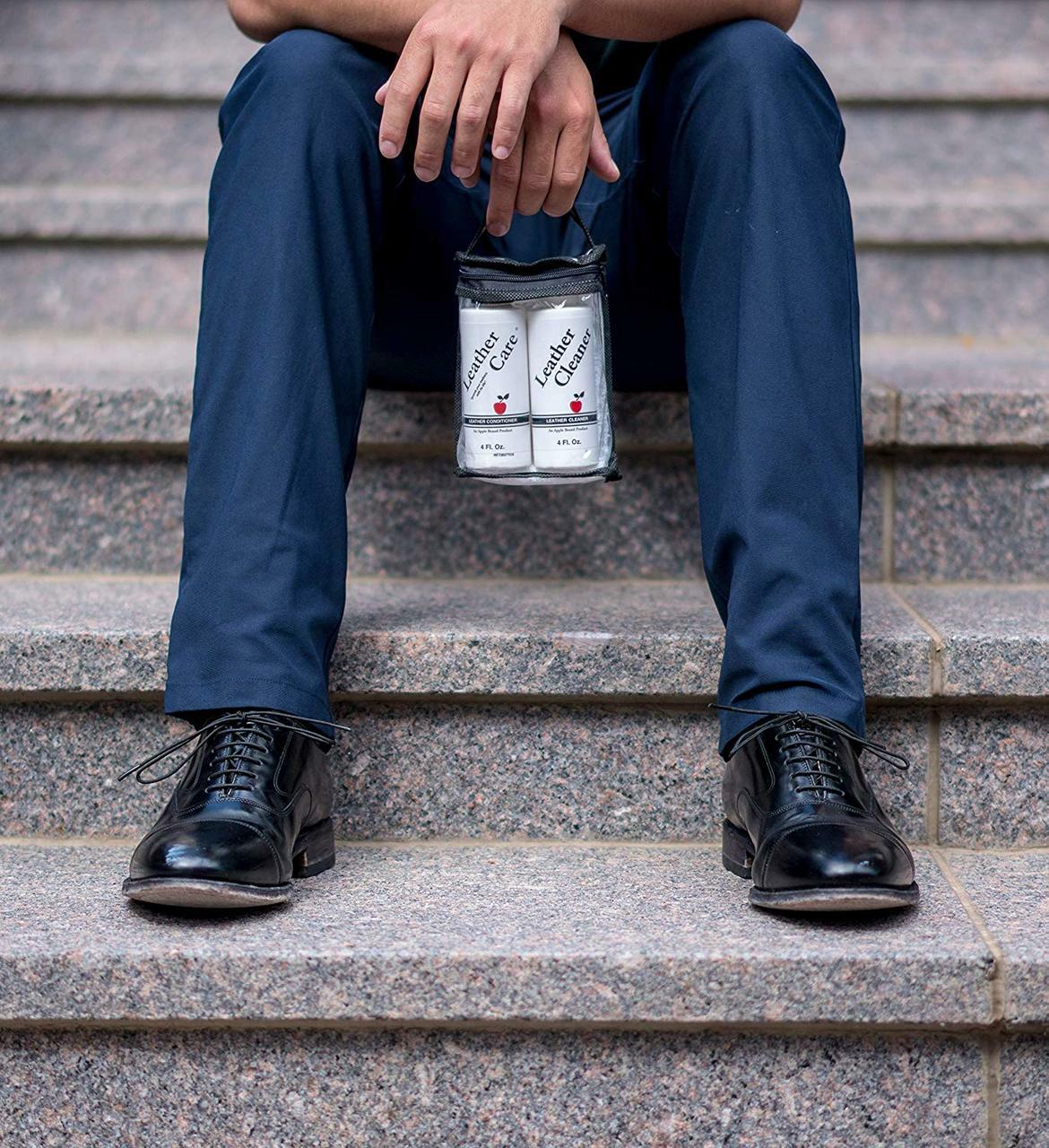Apple Brand Leather Care Cleaner and Conditioner Kit (4 oz. Cleaner, 4 oz. Conditioner and Cloth in a convenient pouch) For Use On Leather Purses, Handbags, Shoes, Boots, Accessories, even Furniture a