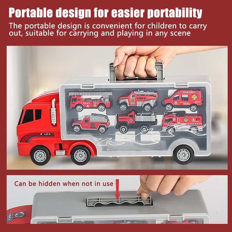 Large Children's Storage Container Truck Alloy Pull Back Car Simulation Fire Truck Engineering Car Police Car Boy Toys