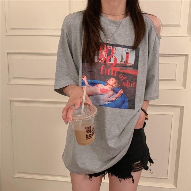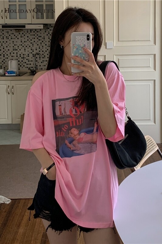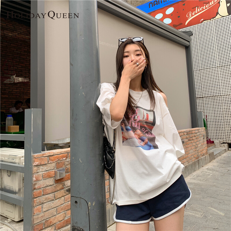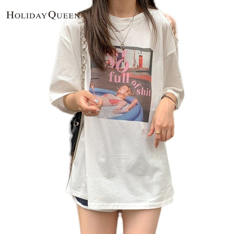 HolidayQueen Summer Korean Version of The New Off-the-shoulder Short-sleeved T-shirt Women's Loose Mid-length Half-sleeved Top ClothesWomen's clothing HQ1045