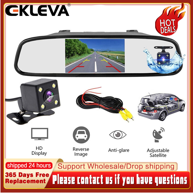 EKLEVA 4.3 inch Mirror Recorder HD 1080P Dash Cam 4K LCD Display Video Recorder Night Vision Wide Angle Car Mirror Video Recorder