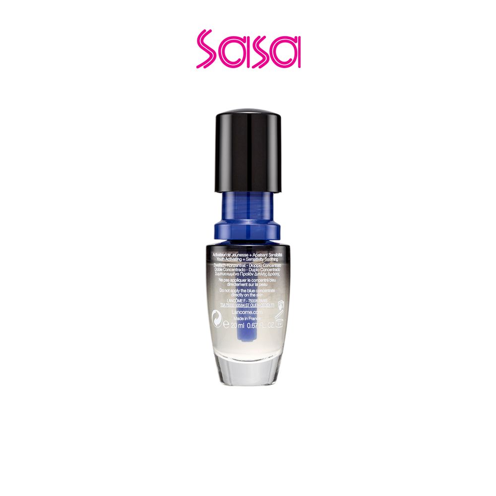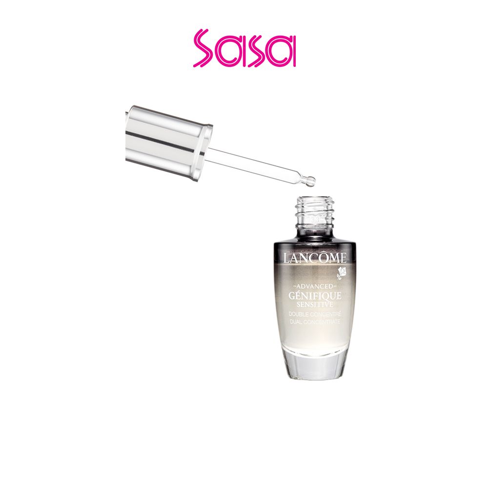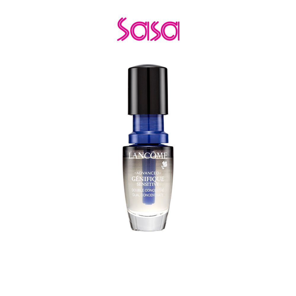 Lancôme Advanced Génifique Sensitive Dual Concentrate (20ml) Dryness, roughness, redness...Bad skin days are over! New Advanced Génifique Sensitive with two formulas in one bottle freshly mixed for ultimate efficacy. In one click, a blue concentrate with antioxidants that are 98% pure releases into a potent serum*, after 28 days cure, skin feels reinforced and visibly rejuvenated.* It effectively against external harmful factors, delaying aging and activating vitality!Product Feature:• Just one click and immediately activate to release 98% Pure Antioxidants* extract. It is rich in Probiotic extract, 98% pure Ferulic acid and Vitamin E* to soothe sensitive skin and reduce visible signs of aging.• The texture is light and can be quickly absorbed by the skin, penetrate into the bottom layer, and awaken the cell's self-repair ability. It helps to smooth and soothe the skin, leaving the skin elastic and translucent, rejuvenating young and tender.• It is recommended to use it at night to care and repair the fragile skin and get rid of the external factors such as friction, environmental pollution and unstable weathers. * Data from Lancôme’s official websiteIngredients:• Probiotic Extract, 98% Pure Ferulic Acid and Vitamin E: Soothing, Repairing, anti-agingHow to use:Step 1: Press clockwise to release the blue concentrate.Step 2: Shake to mix, discard cap and replace with dropper.Step 3: Once activated, you can start your 1-month fresh treatment It is recommended to use after toner every night.