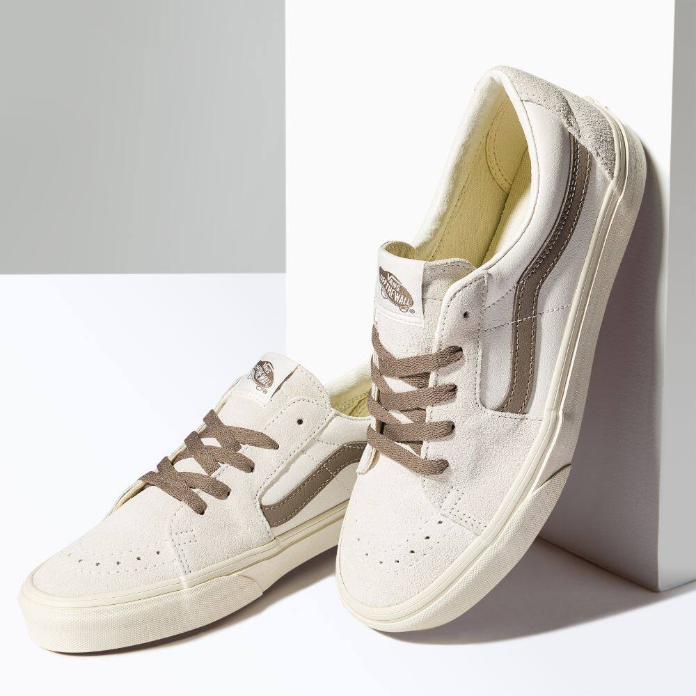 The Vintage Pop Sk8-Low, a takedown of the legendary Vans high top shoe, is built with an array of colors and materials to provide a familiar Sk8-Hi aesthetic in a low top shoe. Featuring sturdy canvas and suede uppers just like its taller counterpart, this lace-up style also includes re-enforced toe caps, supportive padded collars, and signature rubber waffle outsoles.