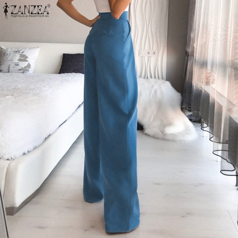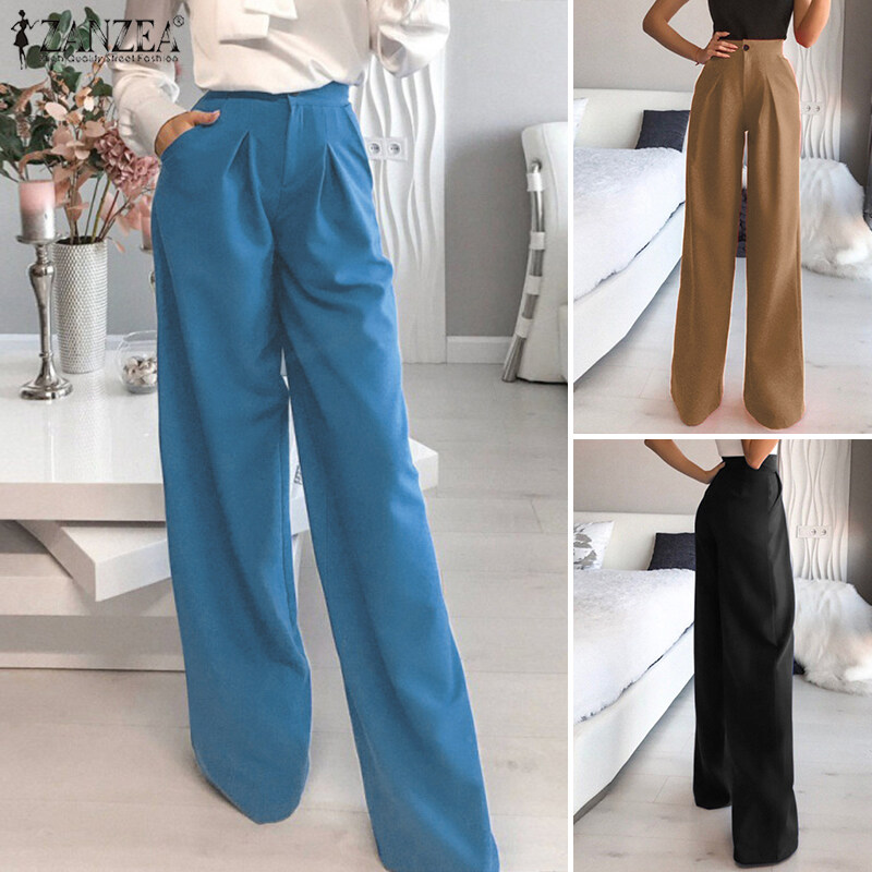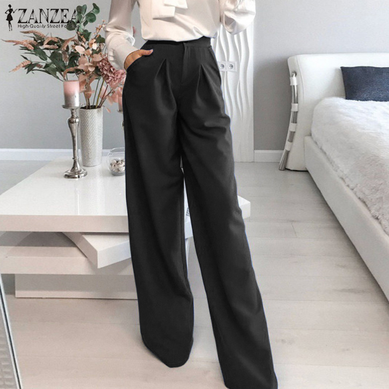 ZANZEA Women Stylish Versatile Solid Straight Pants Formal Casual Pleated Commute Trousers #15