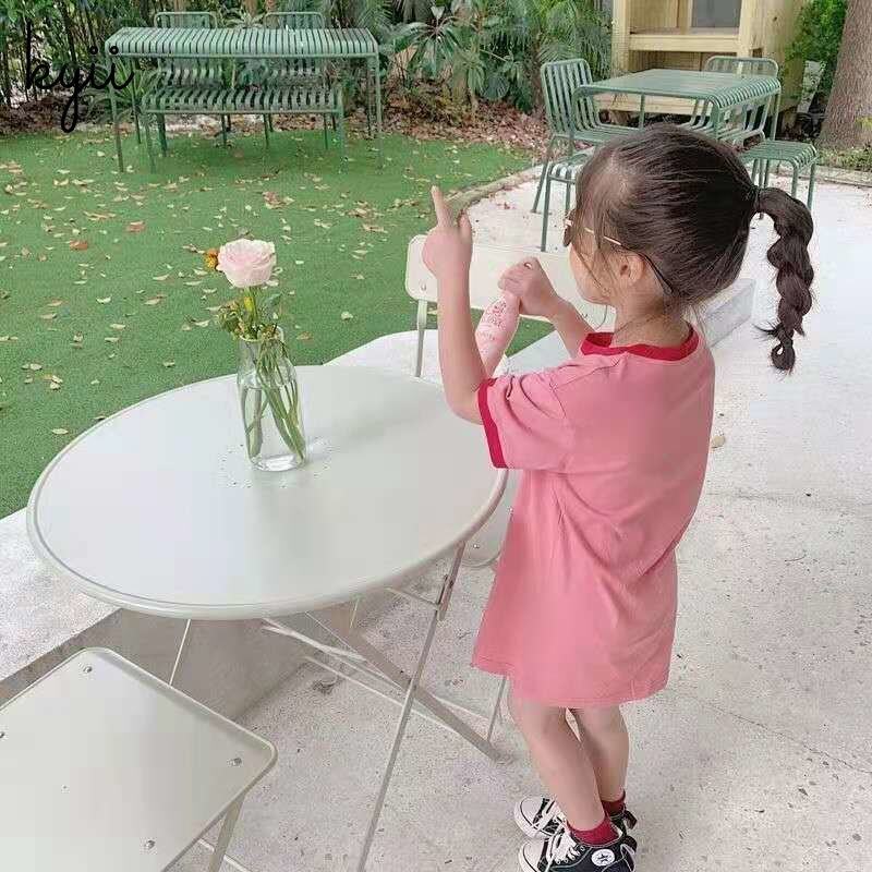 KYII Kids Girls Summer Round-neck Dress Casual Loose Dress kyii0109