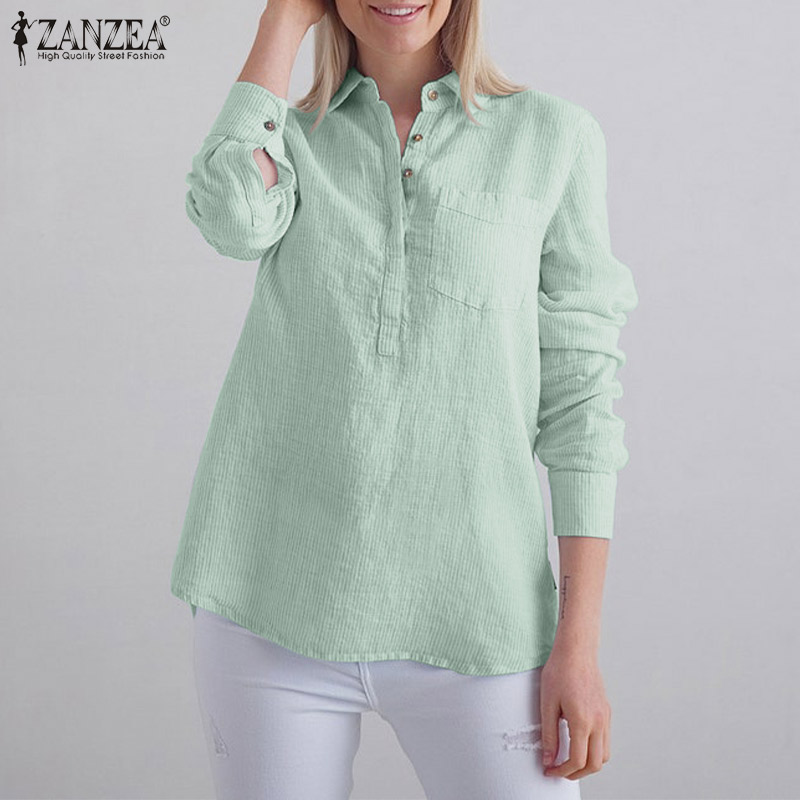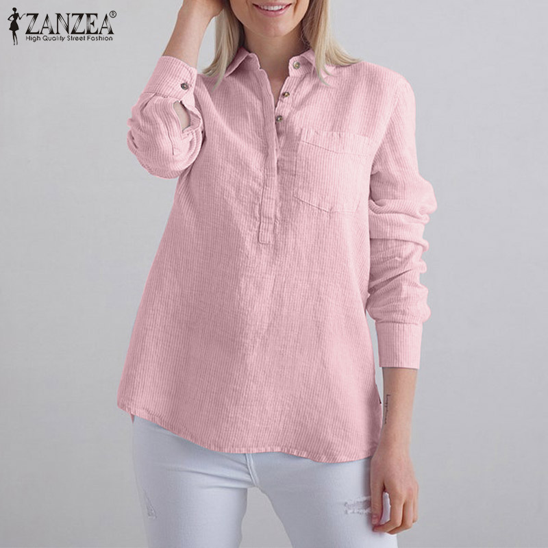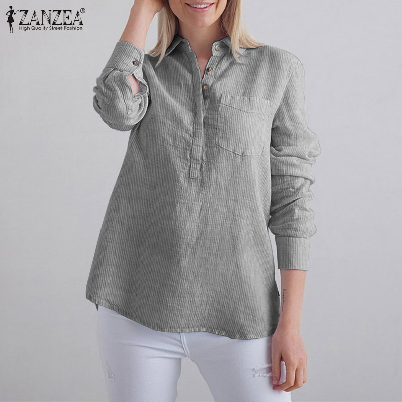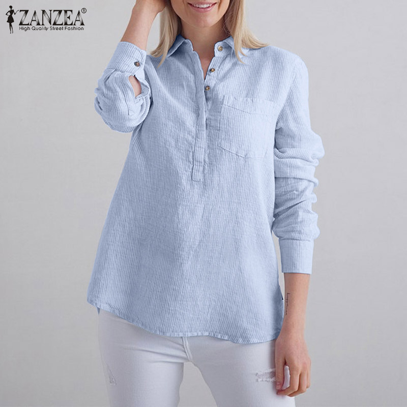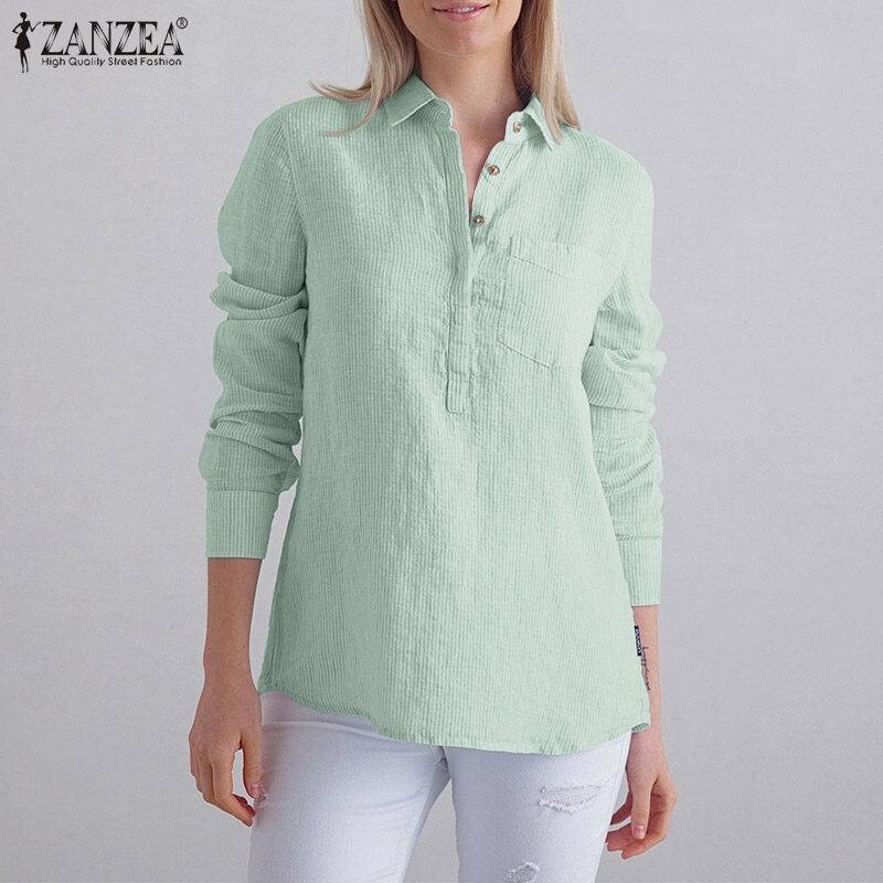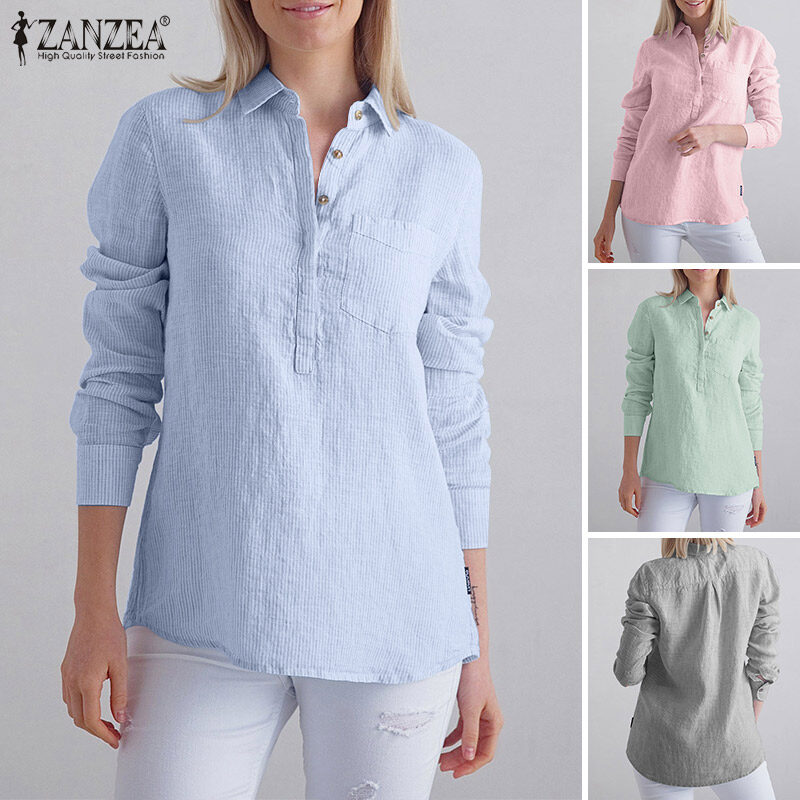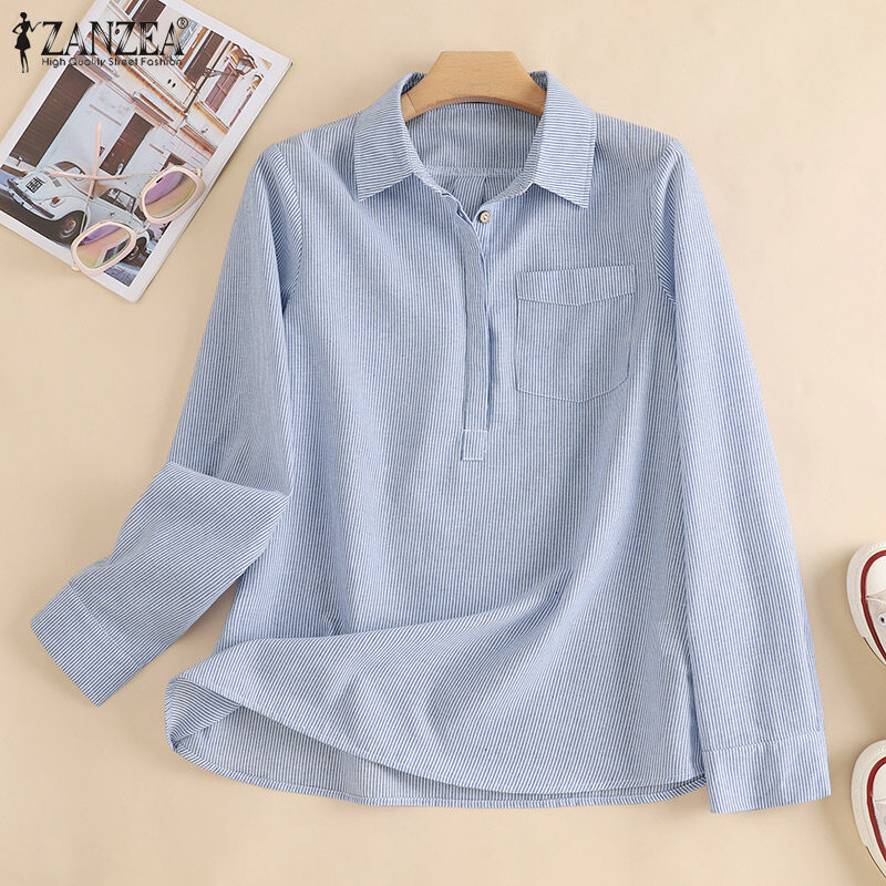 ZANZEA Women Striped Collared Long Sleeve T-Shirts Blouse Casual Work Shirt Loose Tops #15