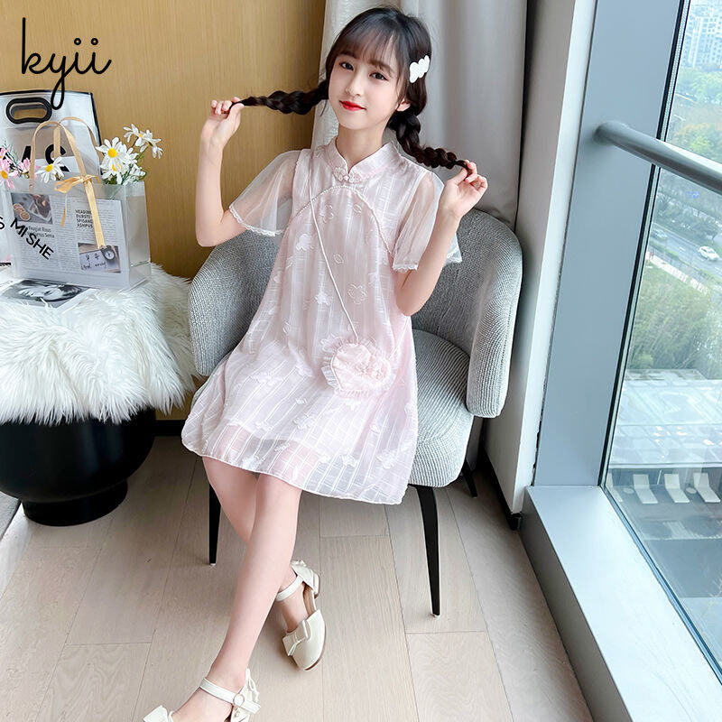 KYII Kids Girls Summer Round-neck Dress Short Sleeve Casual Loose Dress kyii0163