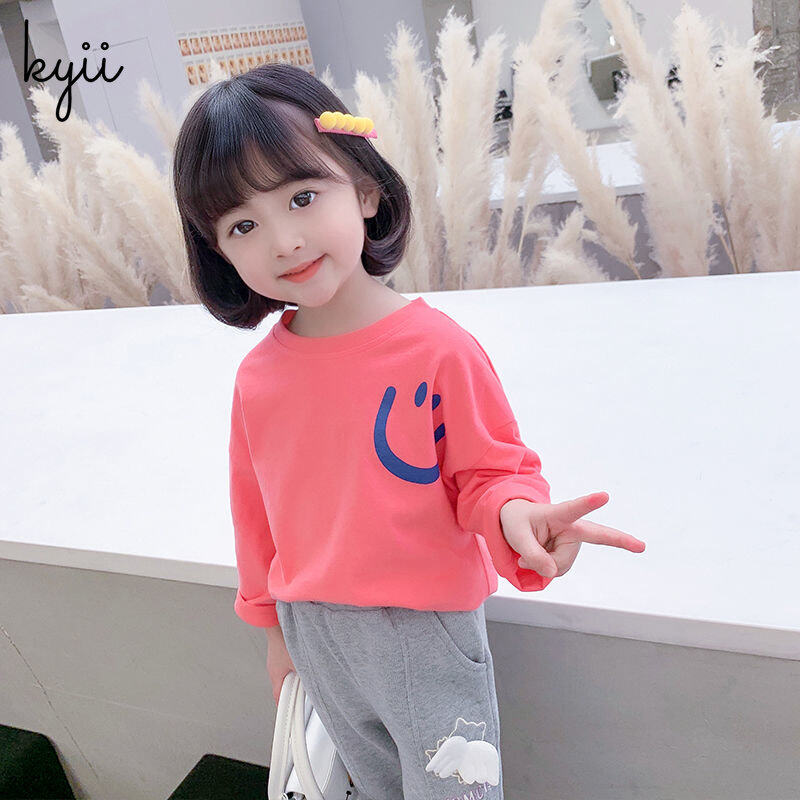 KYII Girls Long Sleeve summer children Cotton Korean Round-neck Top kyii0173
