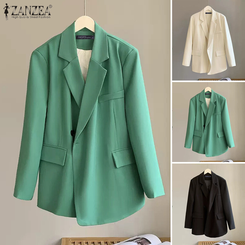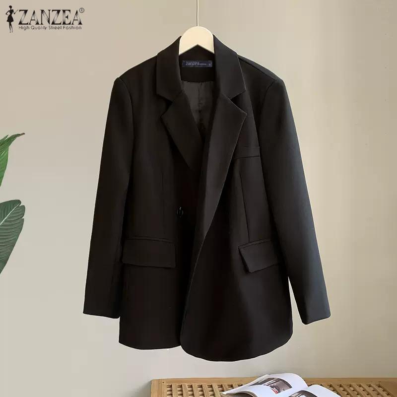 ZANZEA Women Business Leisure Button Up Long Sleeve Suits Formal Office OL Turn-Down-Collar Solid Blazer #3