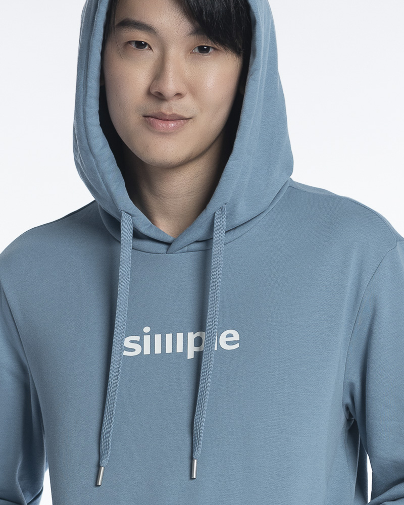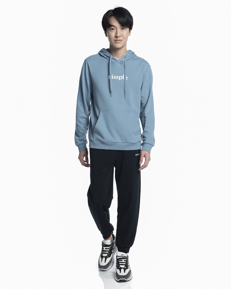 Regular Solid Colour Long Sleeve Pullover Hoodie with Kangaroo Pockets. Comes with "SIMPLE" Slogan on the front. Made of cotton.