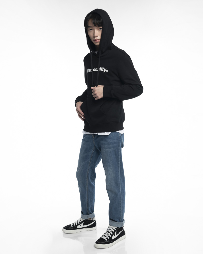 Regular Solid Coloured Long Sleeve Pullover Hoodie with Kangaroo Pockets at the front. Comes with Personality Slogan at the front. Made of cotton.