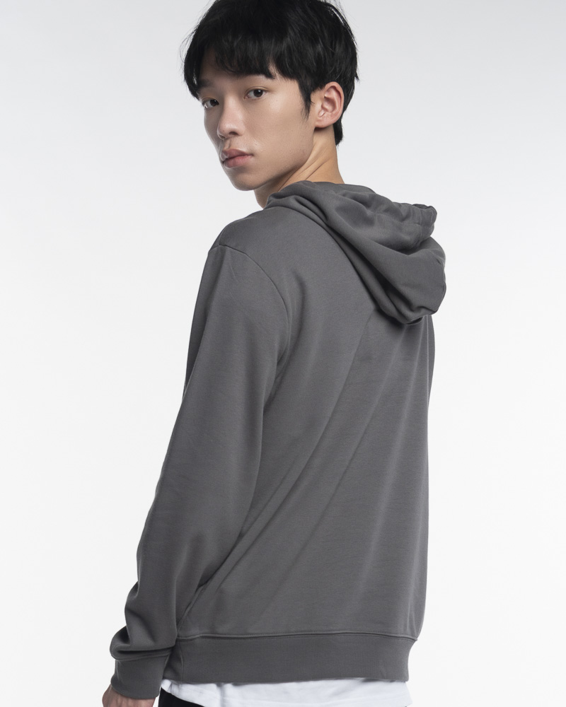 Yishion Men Solid Coloured Pullover Hoodie with Kangaroo Pockets and Personality Slogan (Dk. Gray)
