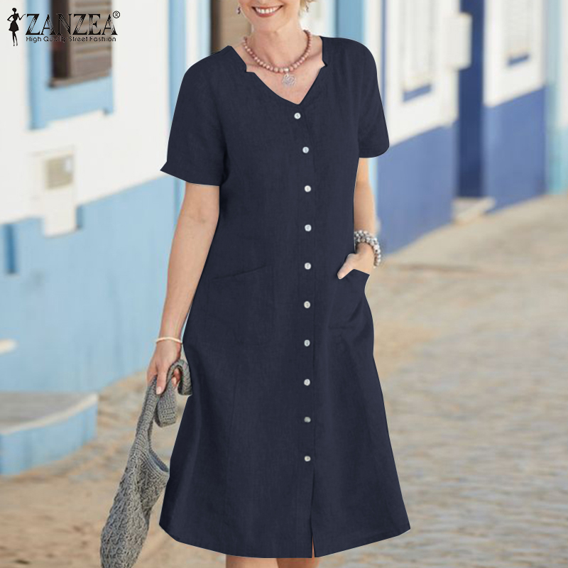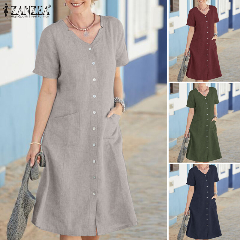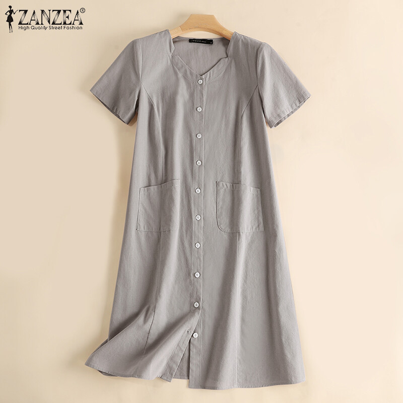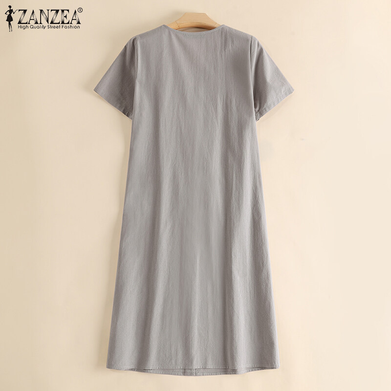 ZANZEA Women Summer Short Sleeve V Neck Knee Length Dress Formal OL Work Dresses #15