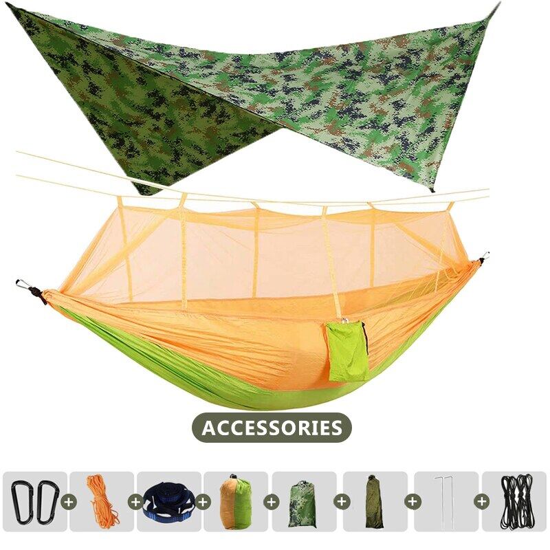 260X140cm Outdoor Double Camping Hammock With Mosquito Net And Rain Fly Tarp Lightweight Parachute Hammocks For Travel Hiking