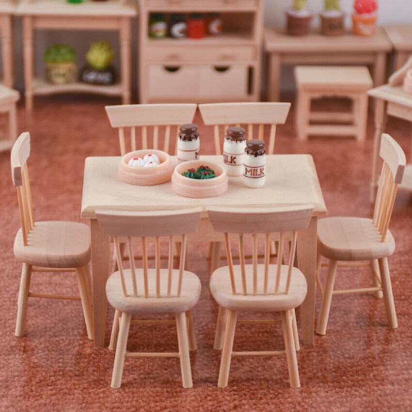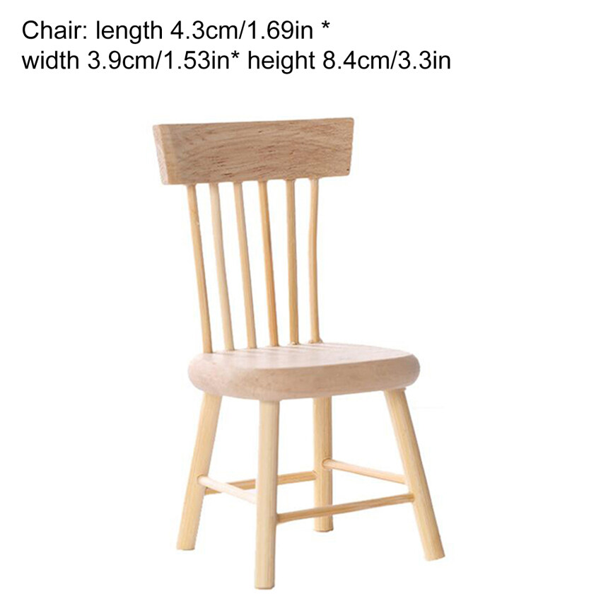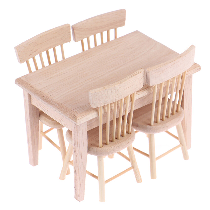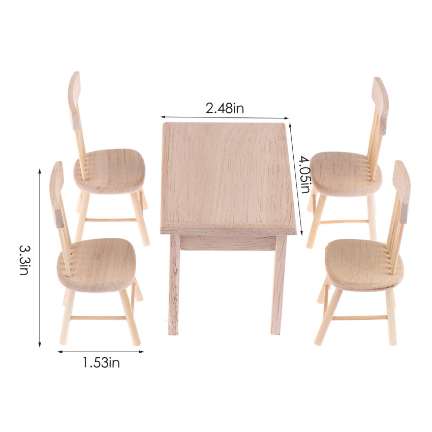 【Ready Stock】1 Set Dining Table Chair Model 1:12 Dollhouse Miniature Wooden Furniture Toy Set High Quality