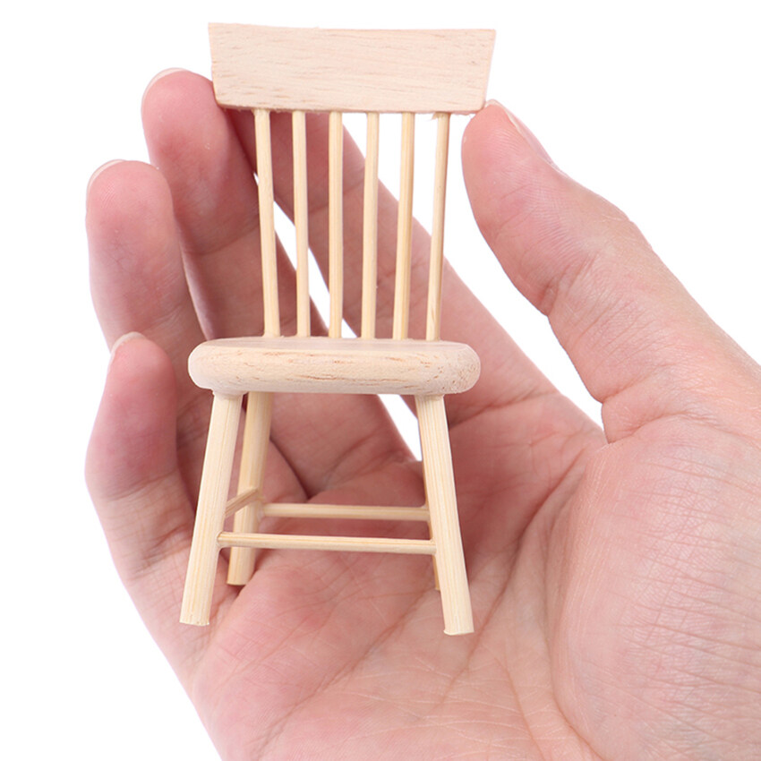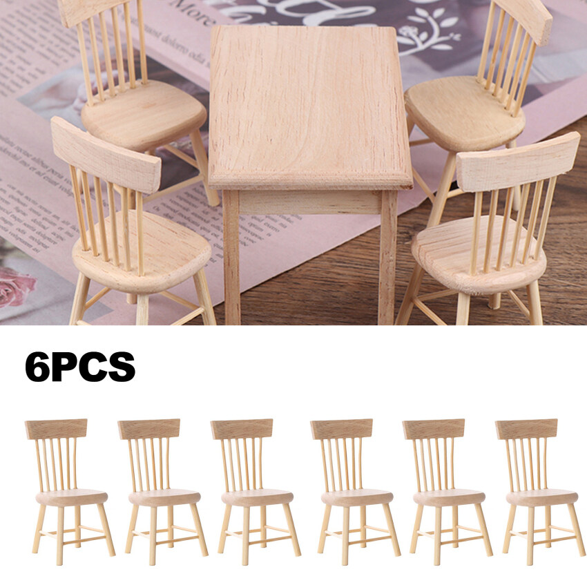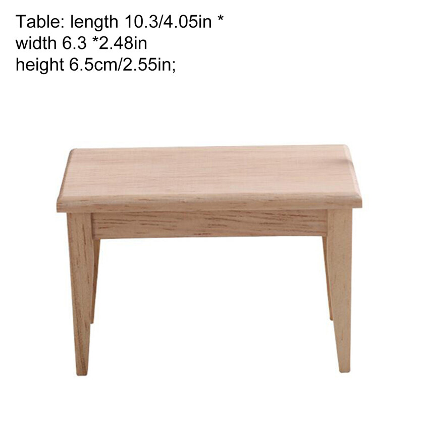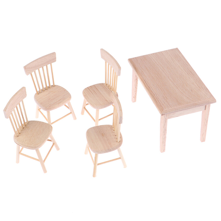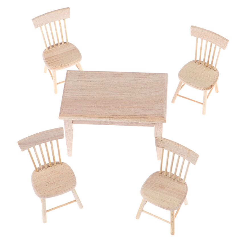 【Ready Stock】1 Set Dining Table Chair Model 1:12 Dollhouse Miniature Wooden Furniture Toy Set High Quality