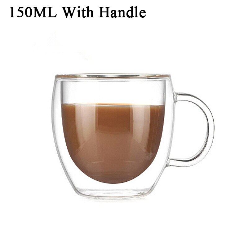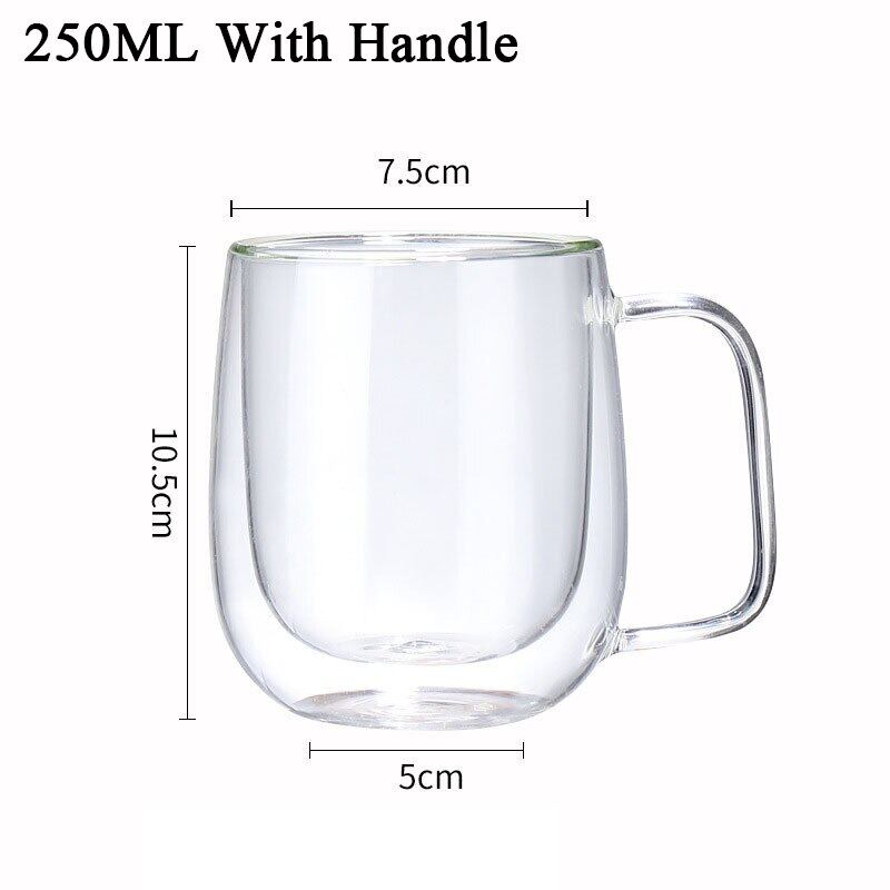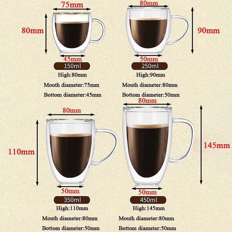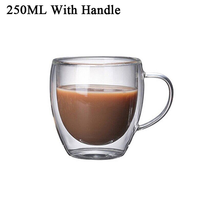 Transparent glass coffee cup  milk whiskey tea beer double creative heat resistant health and environmental protection