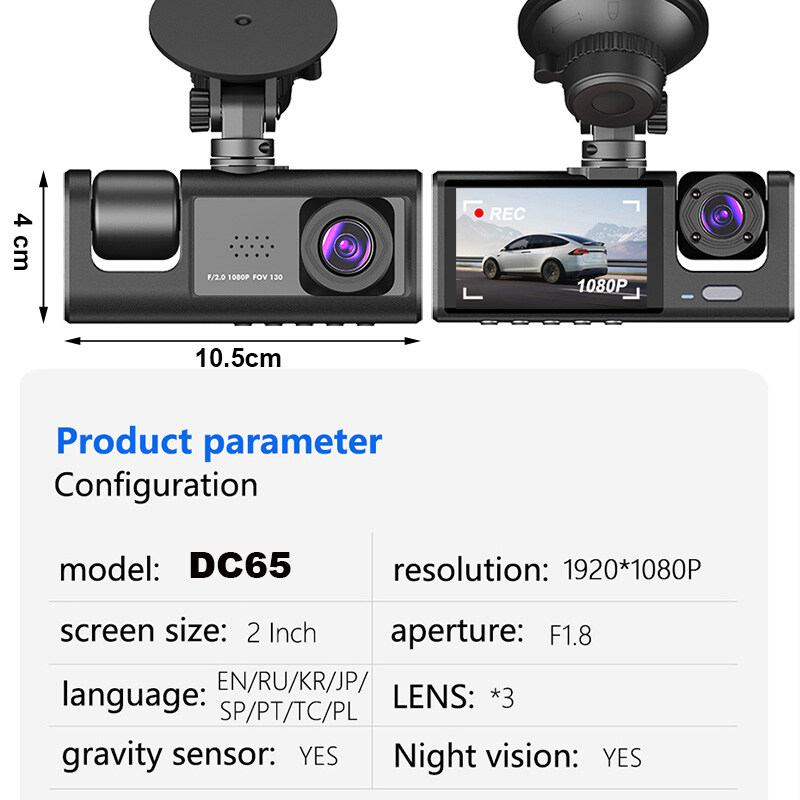 With 1080P front camera + 720P inside camera +720P rear camera, the dash camera can simultaneously record the HD front and rear roads. 1080P HD Video