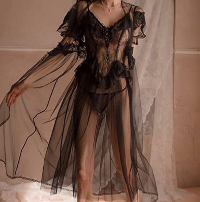 MMLLZEL Palace Private Lingerie Black Lace Thin Section of The Nightgown Chiffon Nightgown (Color : B, Size : M Code)